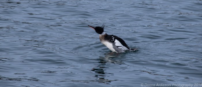 Went to the State Pier yesterday to check it out. Saw this duck catching a ride on a piece of wood and this cute Merganser playing.