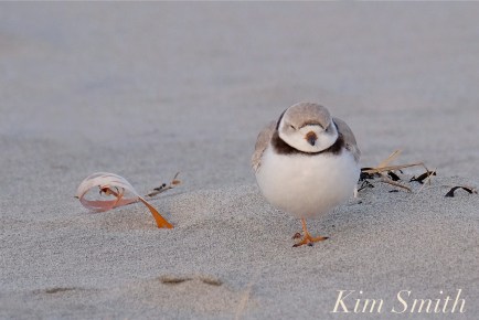 Piping Plover Female Standing One leg Good Harbor Beach Gloucester MA copyright Kim Smith