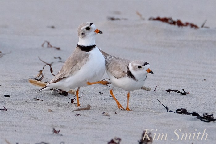 Don’t mistake their resourceful choice of nesting locations as ideal. The parking lot is a horrendous place to nest. It is far away from their food and water. Piping Plover parents take turns sitting on the nest. In a normal situation where the nest is on the beach, one sits on the nest while the other forages close by, but at the same time is always on the lookout to zoom in and help defend the nest from real and imagined predators. Under the parking lot circumstance, while one is brooding in the lot and the other foraging on the beach, they are not in constant contact or communication with one another, making the chance of successfully hatching young all that much slimmer.
