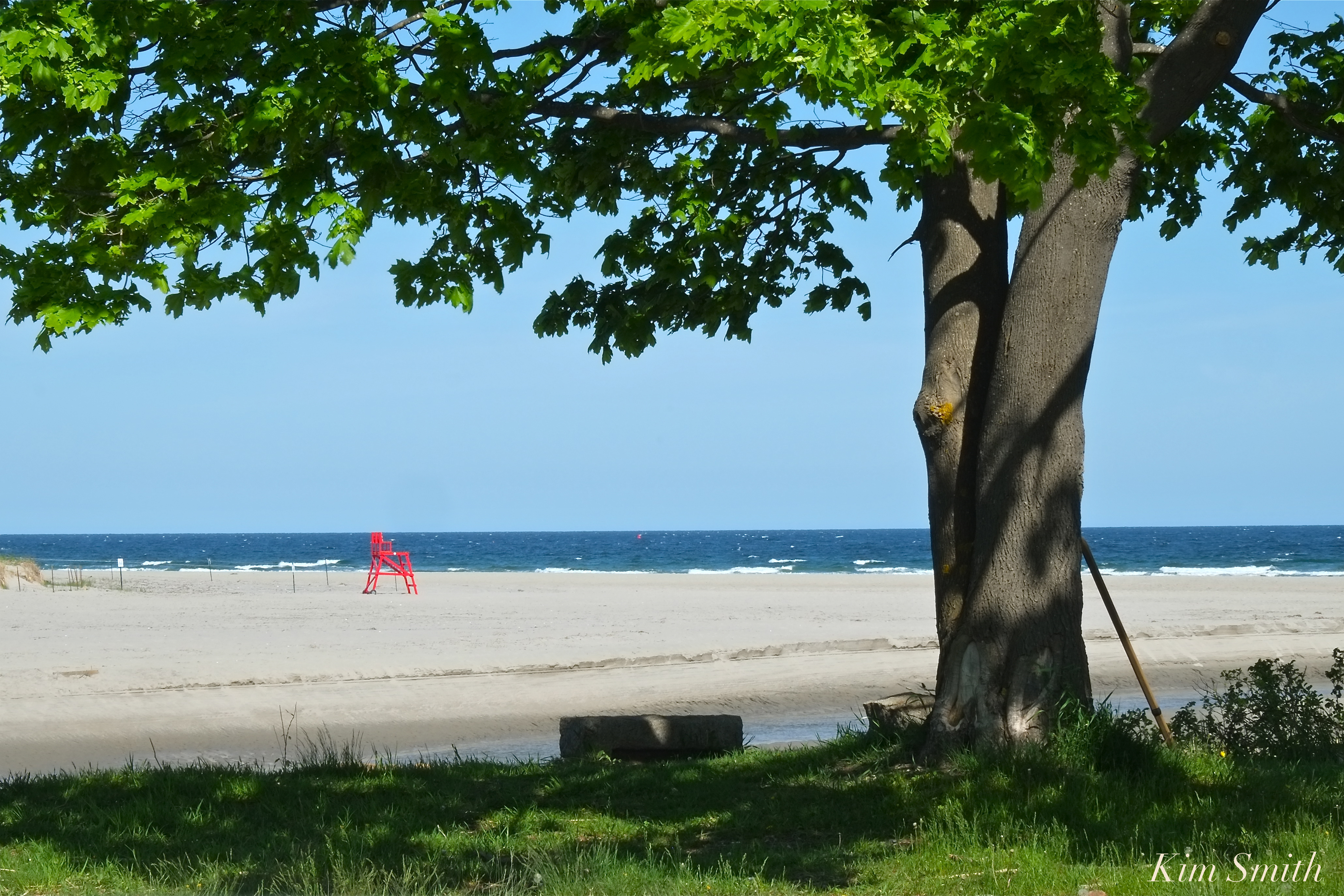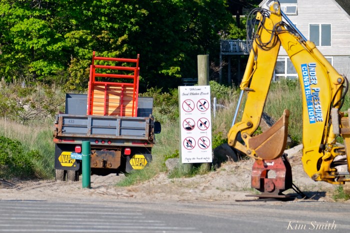 Good Harbor Beach looks pristine, with boardwalks recently repaired, beach cleaned and raked, snack bar opening, and helpful signs installed. A welcome sight this fine morning in May to see the crew setting in place the spiffy bright red life guard perches–a sure sign GHB summertime fun is just around the corner π