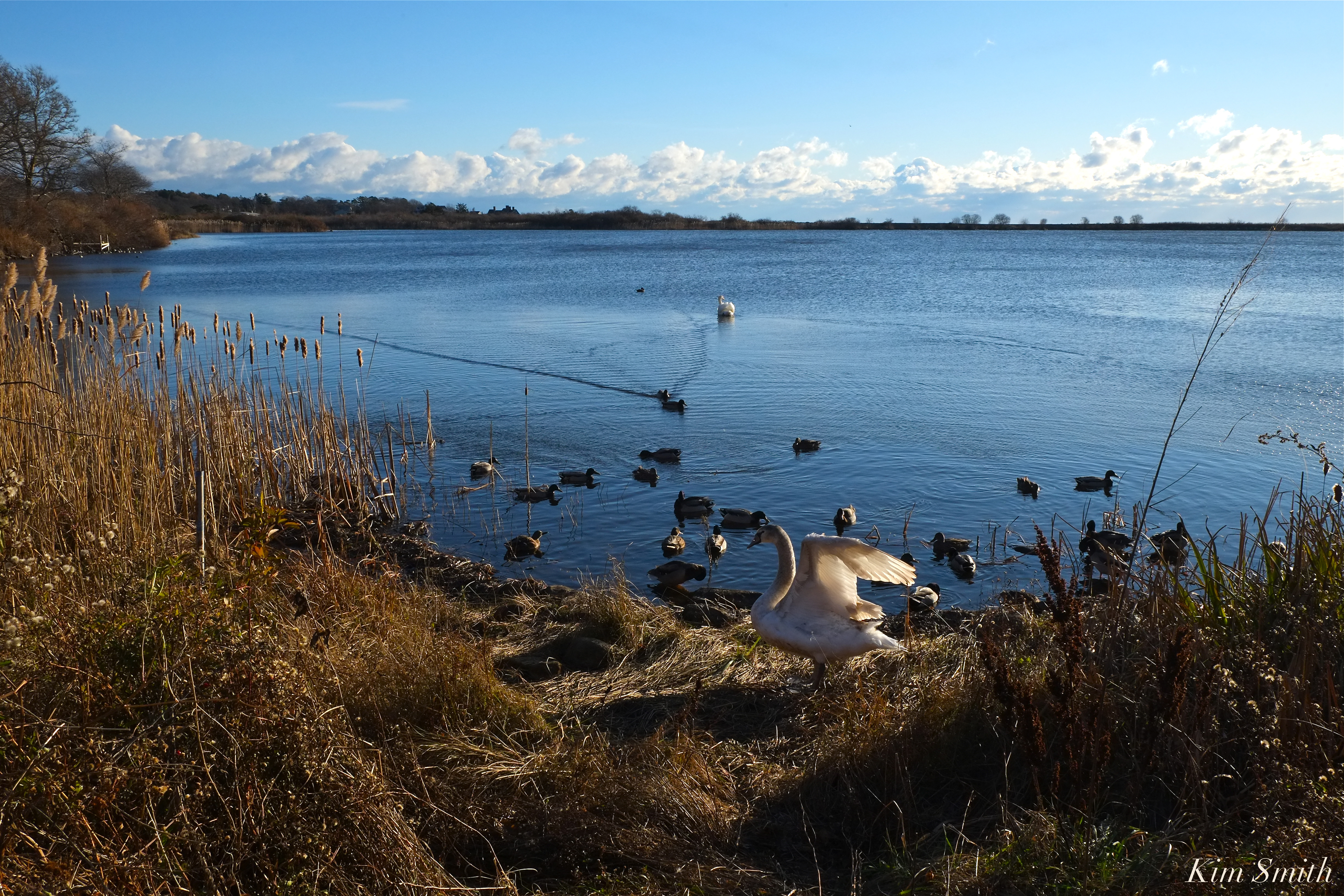 Mr. Swan and the Young Swan Niles Pond copyright Kim Smith