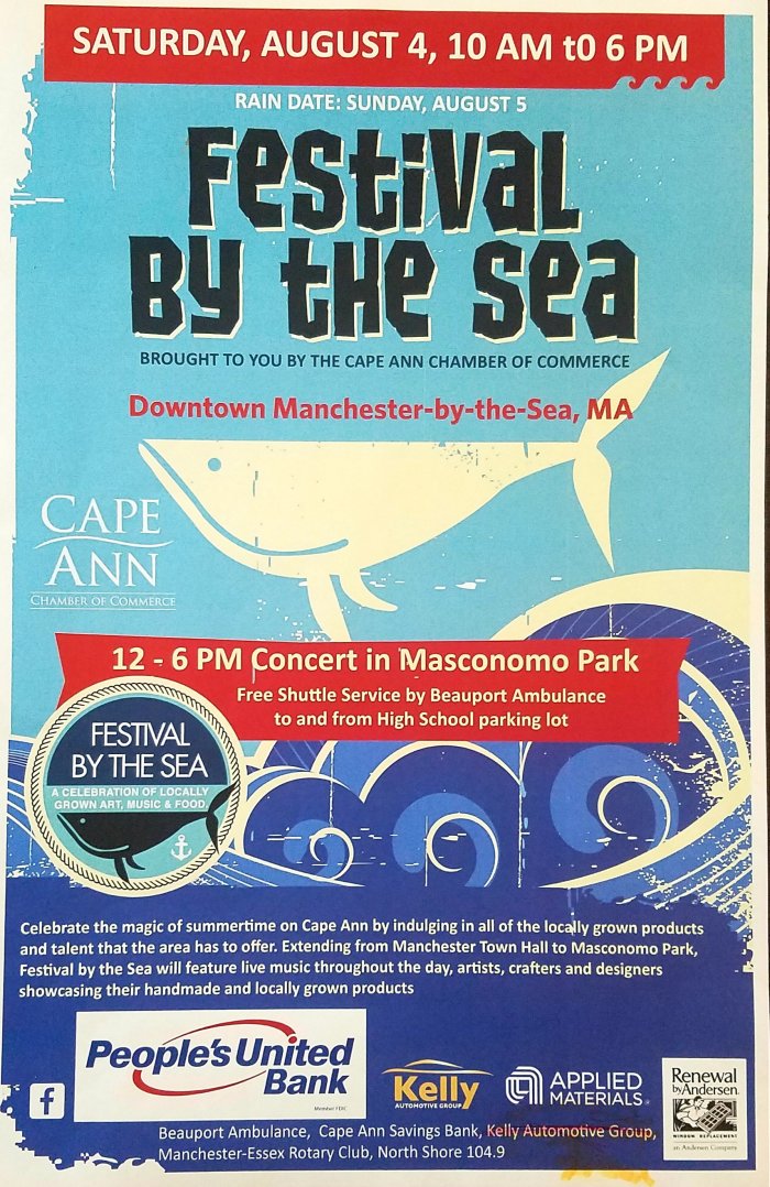 Cape Ann Chamber of Commerce is proud to present the 2018 Festival by the Sea in beautiful Manchester by the Sea, Saturday, August 4, 10 AM to 6 PM. We have over 100 Artist, Crafters and more! All for the love of Cape Ann.