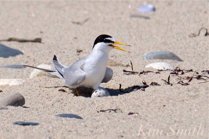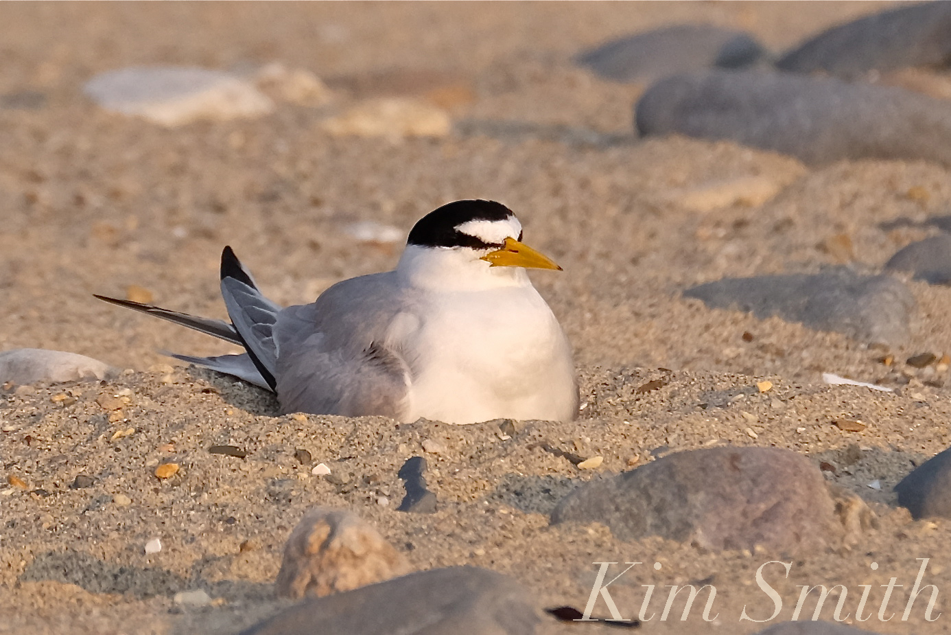 Least Tern eggs are astonishingly well camouflaged on a pebbly beach, making them nearly impossible to see. It’s easy to understand why the species is threatened, and in some regions, endangered. Least Terns nest on sandy beaches with little vegetation, the same type of beach habitat that people love. Piping Plovers and Least Terns often nest in association with each other. In Massachusetts, the Least Tern is considered a Species of Special Concern.