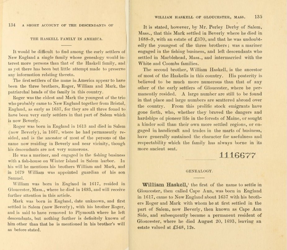 A short Account of the Descendants Of Haskell published 1900