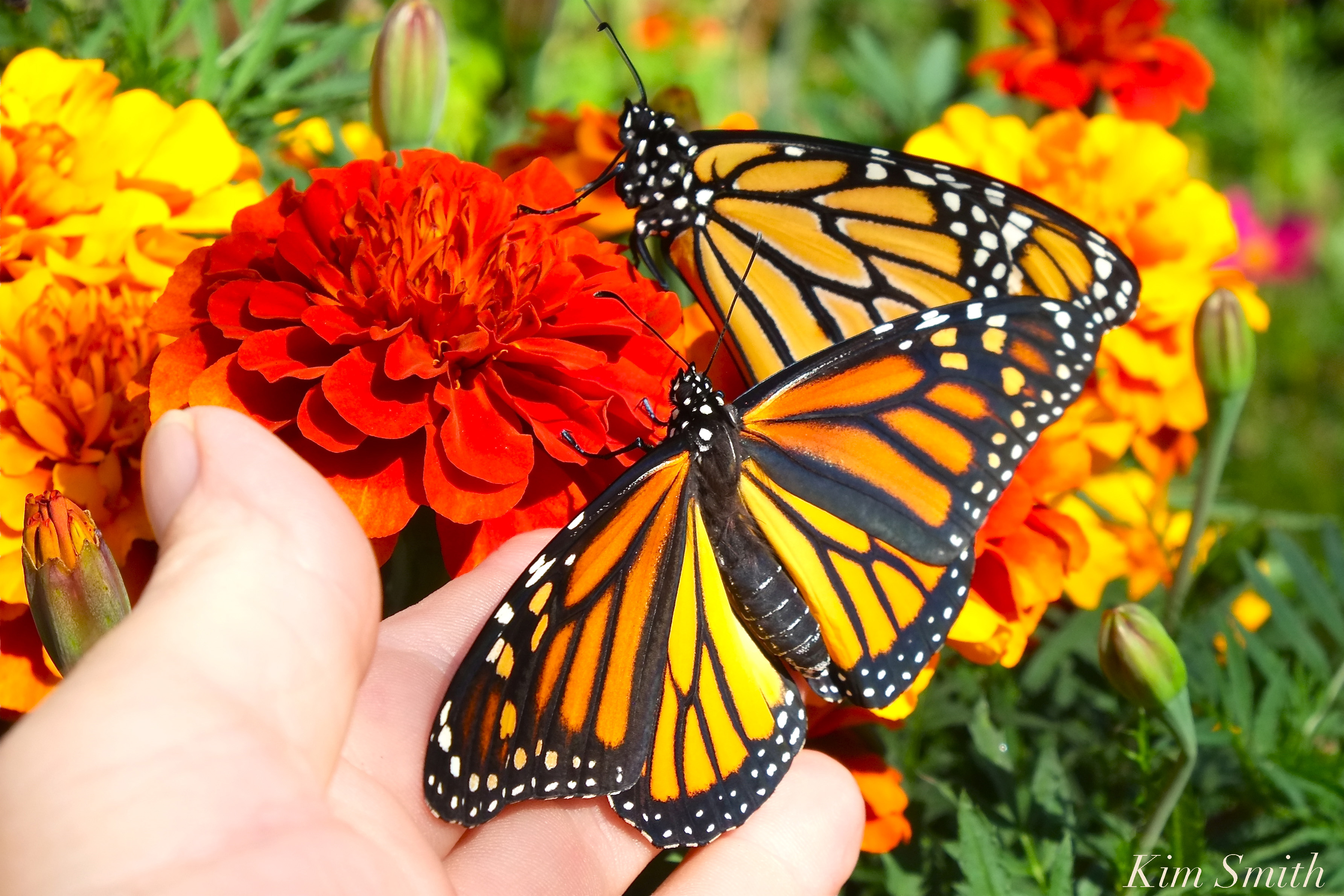 Monarch Butterfly drying new wings in the morning sun female male copyright Kim Smith