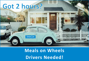 SeniorCare’s Meals on Wheels program is in need of volunteer drivers to deliver noon time meals to homebound seniors in Rockport, Essex, Manchester, Gloucester and Ipswich. Anyone interested in volunteering one or more mornings a week will be greatly appreciated. The hot meals are fully prepared and packaged for delivery. For information, contact 978-281-1750 x560, Monday-Friday 9am-4pm.