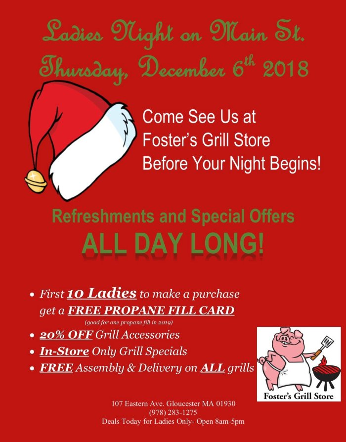 Refreshments and Special Offers All Day December 6th, 2018 At Foster’s Grill Store For Ladies Night