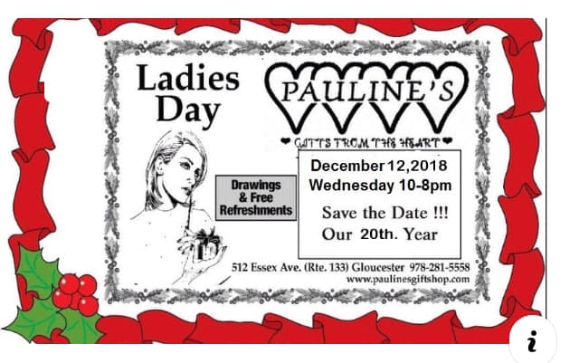 If you have time stop in anytime Wednesday 12th. From 10-8. Pauline’s Gifts annual Ladies Day is all about celebrating another great season. Hope you find time to stop by.