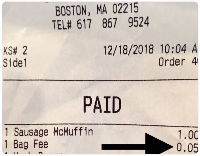 McDonalds In Boston Charging 5 cents for a bag due to bag ban