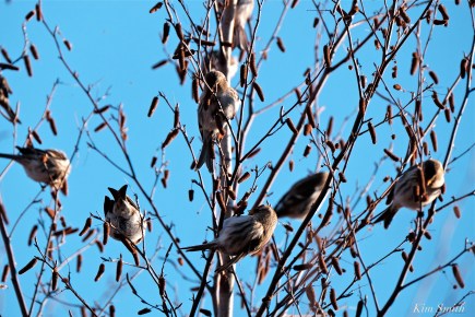 Common Redpoll Eating Seeds Massachusetts Carduelis flammea -8 copyright Kim Smith