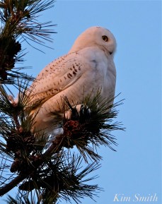 Snowy Owl Bubo scandiacus Pine Tree Massachusetts -2 copyright Kim Smith