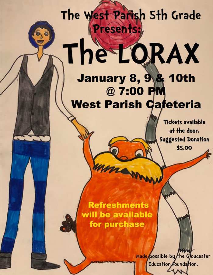 You are invited to attend the West Parish 5th grade class’s presentation of THE LORAX!