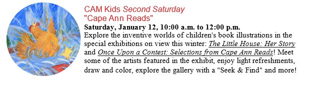 cam kids second saturday cape ann reads Spread The GMG Love By Sharing With These Buttons:Tweet Click to email a link to a friend (Opens in new window) Email Click to print (Opens in new window) Print Click to share on WhatsApp (Opens in new window) WhatsApp Pocket Click to share on Reddit (Opens in new window) Reddit Like Loading... Published by Catherine posted content / cell phone photos mine, unless otherwise credited (thumbnail portrait of Catherine at MFA, Boston © David Cox photo) https://www.cryanaid.com/ View all posts by Catherine