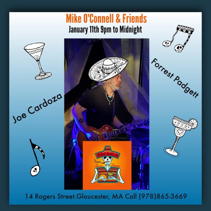 Music begins at Machaca this weekend with Mike O’Connell & Friends 9pm Friday 1.11.2019