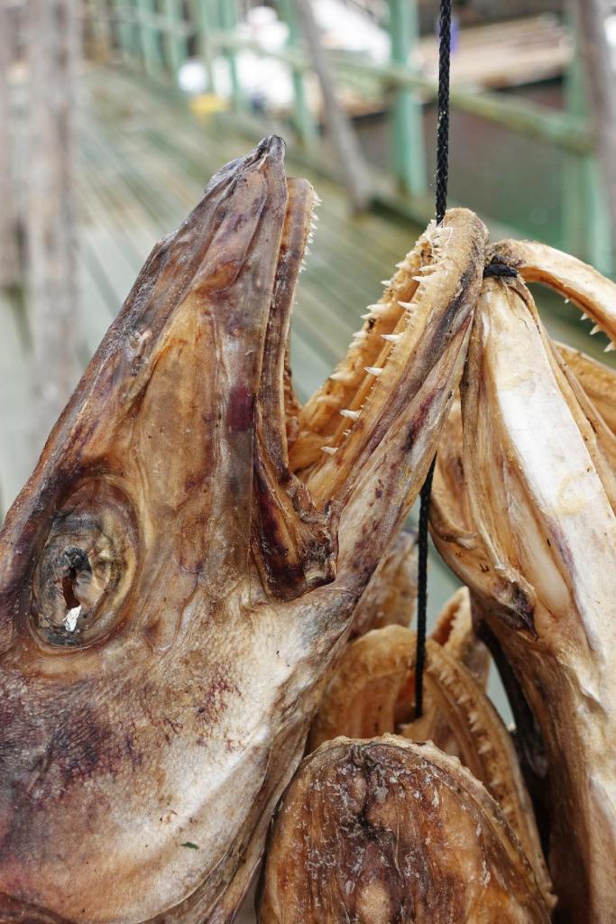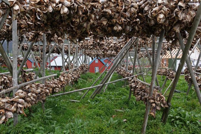 I enjoyedย Kevin Henry’s tilefish head posting last evening.ย Here are a few photos from our family reunion trip to Norway last summer where the dried cod head (and body) industry is doing just fine.