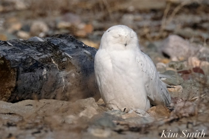 Not one, but two, Snowy boys were well camouflaged amidst the rocks. They were far apart from one another when one flew toward the other. The stationary fellow didn’t move an inch and barely opened his eyes, while the flying fellow hid himself expertly behind a clump of dry wildflowers. The two sleepily hung out together, positioned not twenty feet apart.