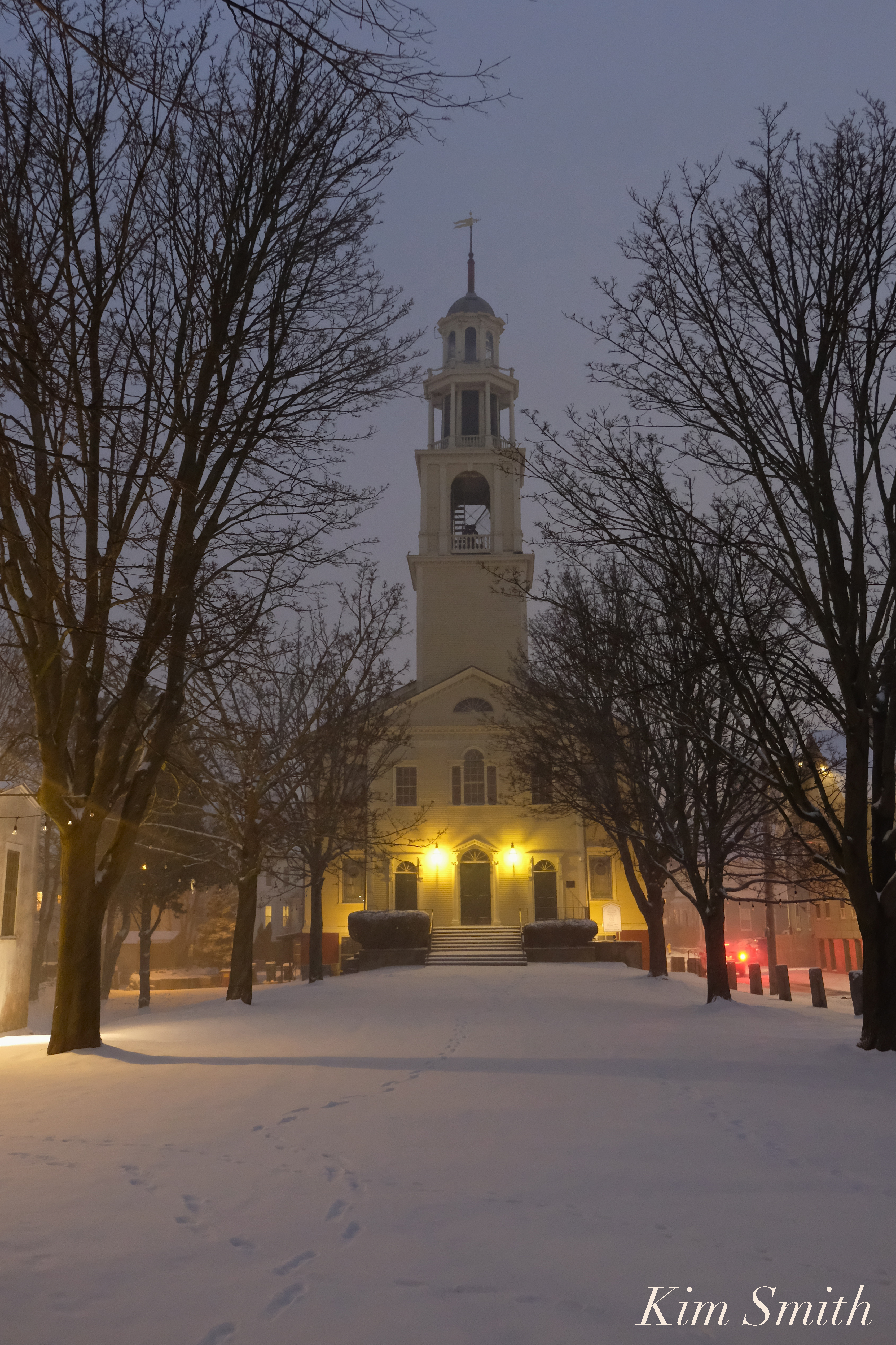 Gloucester Snowy Night UU Church copyright Kim Smith