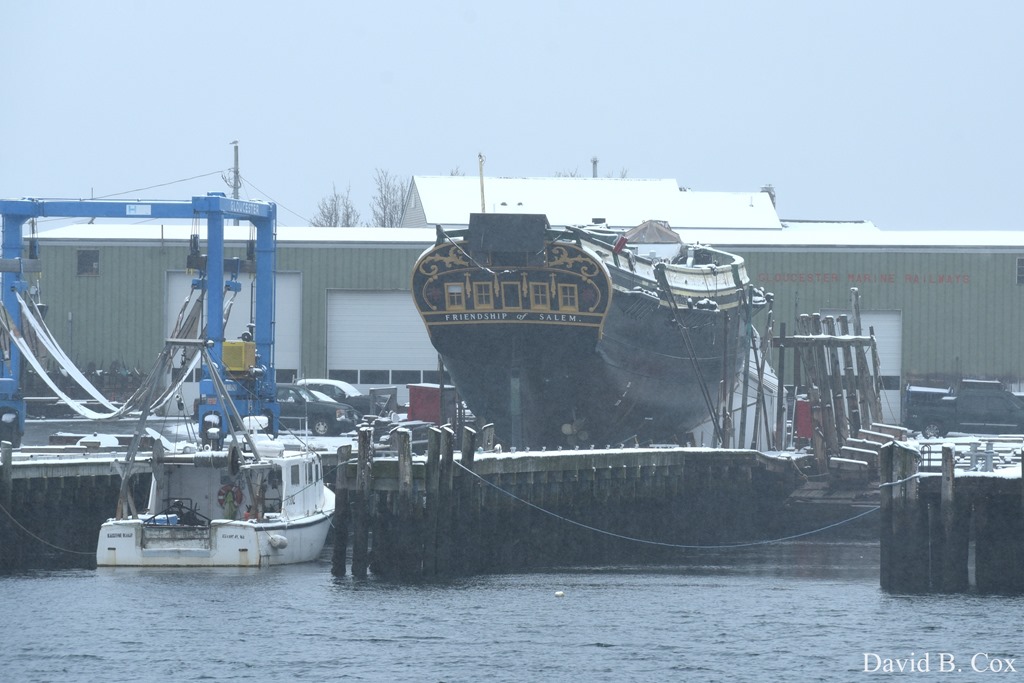 GRAND SUPER SNOW MOONRISE AND MOONSET OVER GLOUCESTER