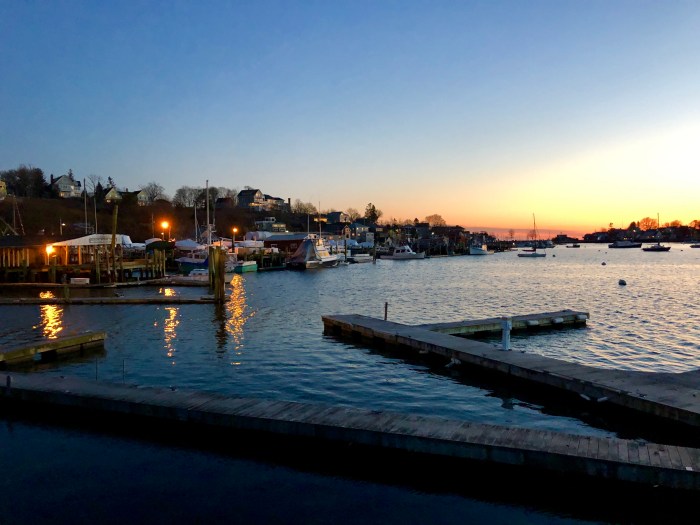 Our Charlotte loves looking at the Moon, so when she popped up in bed at 5:30 in the morning and exclaimed Moon!, I bundled her up and off we went to see the Moon setting over the Harbor. I wrote last month that she loves looking up in the sky for the Moon, largely from reading her the story book Good Night, Moon, and now we are reading Buenos Noches, Luna, practicing for an upcoming trip to Mexico.