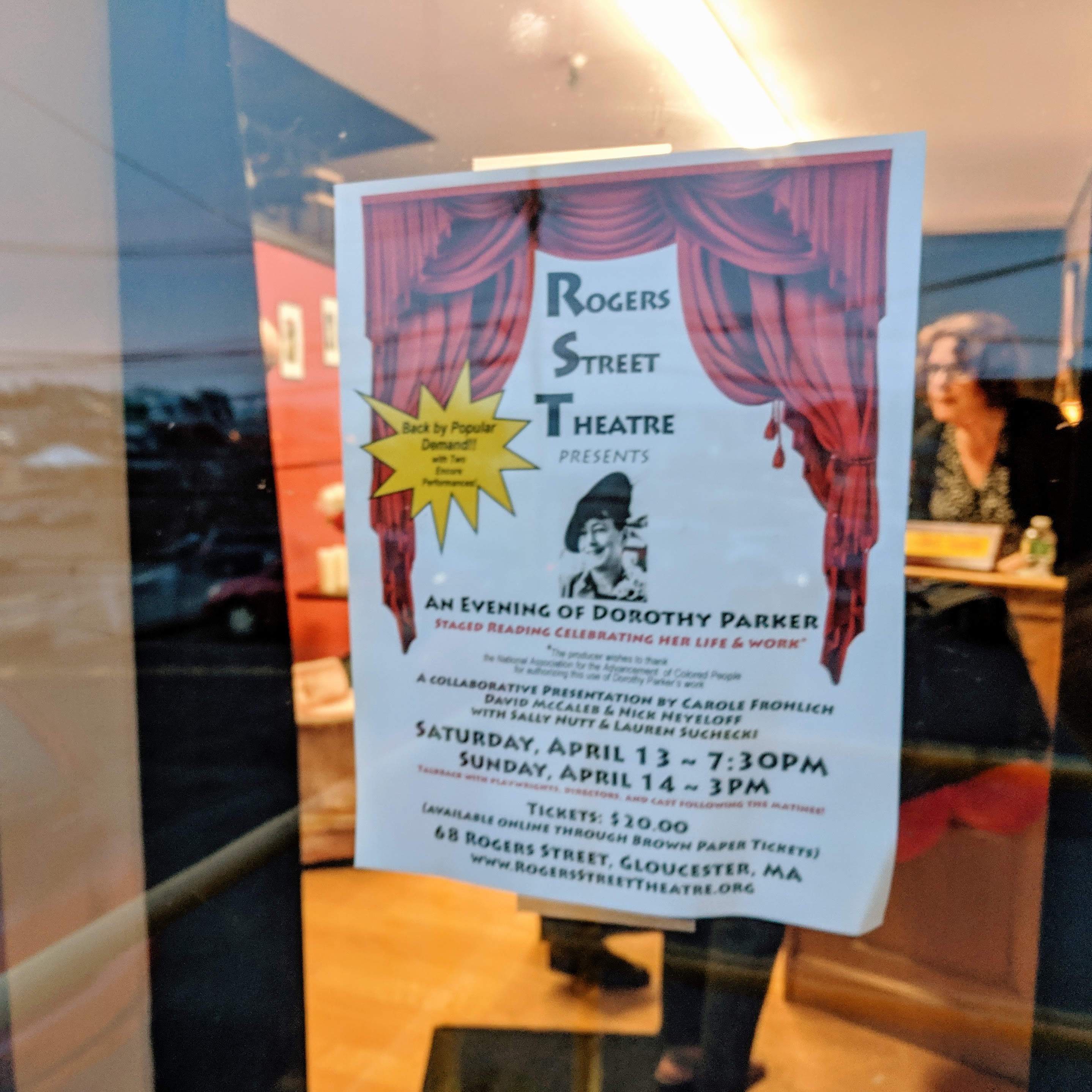 Before the show_Rogers Street Theater_ Evening Dorothy Parker_20190413_© catherine ryan (7) Spread The GMG Love By Sharing With These Buttons:Tweet Click to email a link to a friend (Opens in new window) Email Click to print (Opens in new window) Print Click to share on WhatsApp (Opens in new window) WhatsApp Pocket Click to share on Reddit (Opens in new window) Reddit Like Loading... Published by Catherine posted content / cell phone photos mine, unless otherwise credited (thumbnail portrait of Catherine at MFA, Boston © David Cox photo) https://www.cryanaid.com/ View all posts by Catherine
