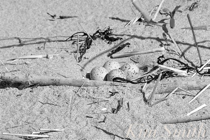 The Piping Plovers have a nest and it is not in the parking lot! Four beautiful, perfect eggs are now being tended to by both Mama and Papa Plover on the beach, in the same general location as the 2016 and 2017 nest locations.
