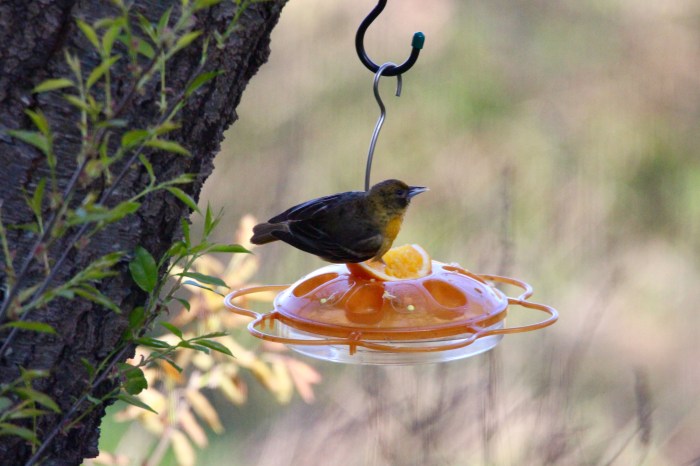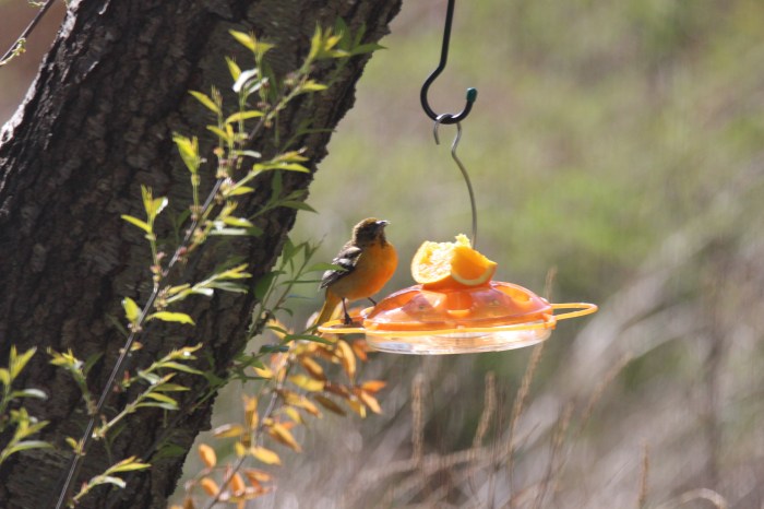 Emily Dickinson’s words seem very appropriate for these backyard orioles. I am so happy to see them….for me, this is a real treat….like an orange for an oriole. I will wait patiently for the male to sit still long enough for his photo shoot.