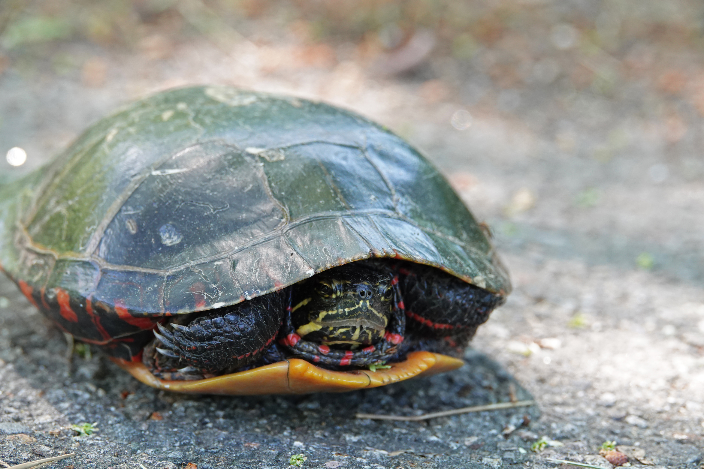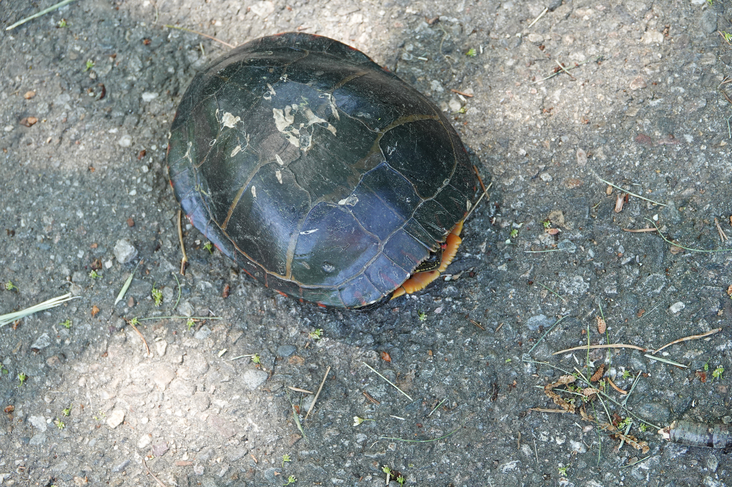 Papa Plover warming the three chicks. They were fifteen days old on Saturday morning.