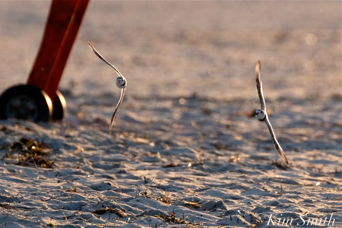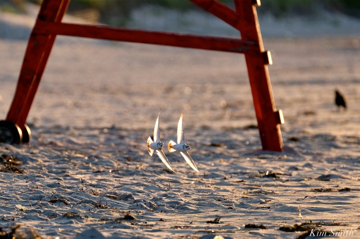But there is more to the story about what makes Piping Plover males Super Dads. Papa is not only an excellent Dad in that he is a fifty/fifty caretaker of the chicks, but male Plovers are also fierce defenders of their family. Our Papa is no exception. He is always on high alert, especially when it comes to the Bachelor and his antics. Between gulls, crows, other avian predators, human caused disturbances, and even danger from one of their own kind, it’s not easy being a Plover Dad.