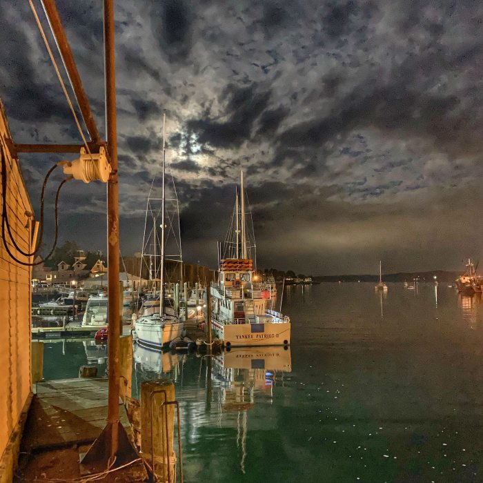 3:55AM At The Dock. Water is still as can be in #GloucesterMa harbor.