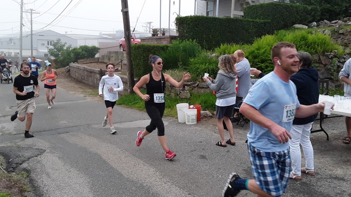 Kim and Mike Ellis, set up a water station for the runners almost every year. Kim works at West Parish and her students said they missed her last year and their water station. Here are pics