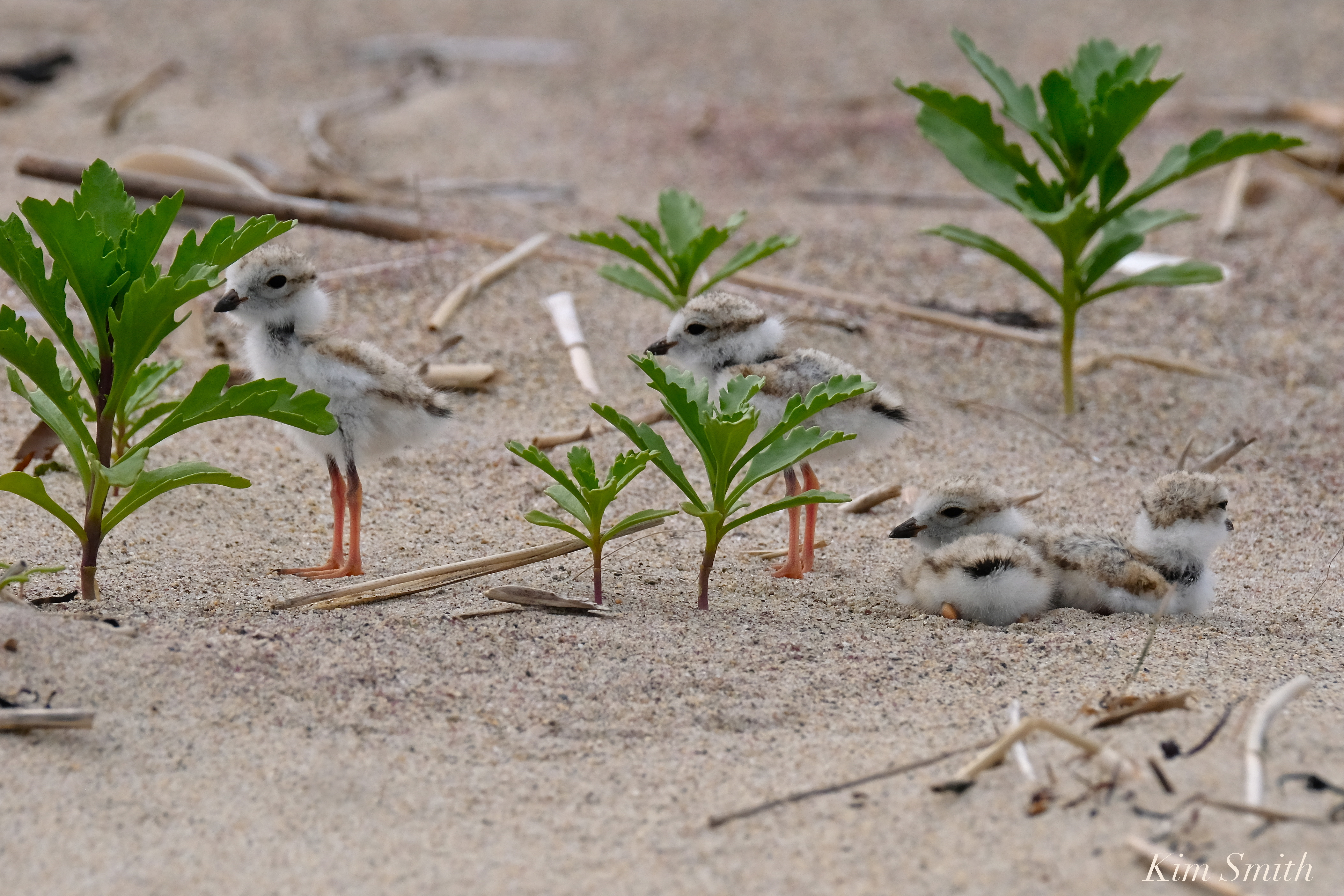 Piping Plover Hatchlings hiding in a Sea-rocket jungle copyright Kim Smith