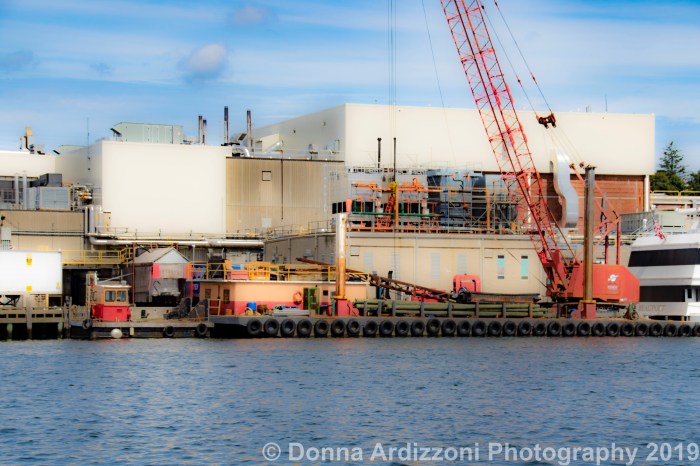 The barge that is rebuilding Magnolia’s Pier was docked near Cruiseport last week.