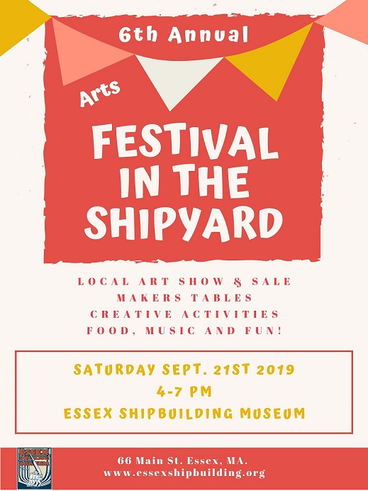 Join us at the Essex Shipbuilding Museum on September the 21st, from 4 PM to 7, for the 6th Annual Arts Festival In The Shipyard.