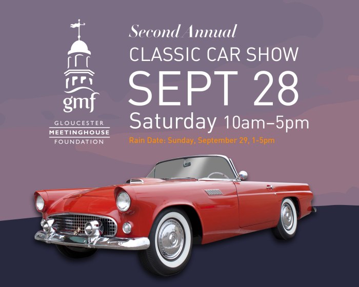 SECOND ANNUAL CLASSIC CAR SHOW COMES TO MEETINGHOUSE GREEN, CORNER OF CHURCH & MIDDLE STREETS IN GLOUCESTER ON SATURDAY,SEPTEMBER 28TH, 10:00AM TO 2:00PM