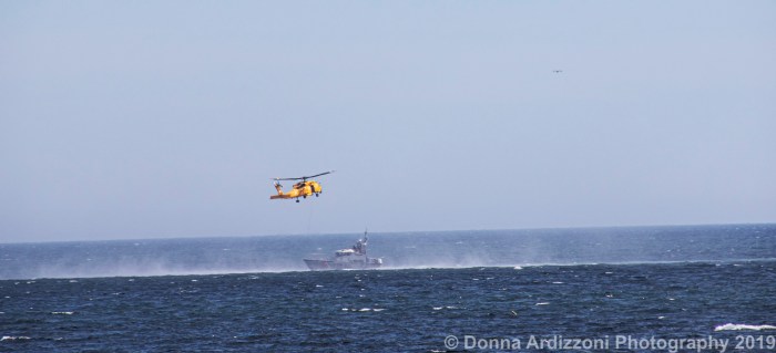 Off of Shore Road, the Coast Guard was practicing rescue maneuvers on Thursday afternoon. Thank you Coast Guard.