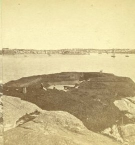 historic fort as it was photograph circa 1870_shows gun embrasure and cannon steps and ports Stage Fort Park Gloucester MA