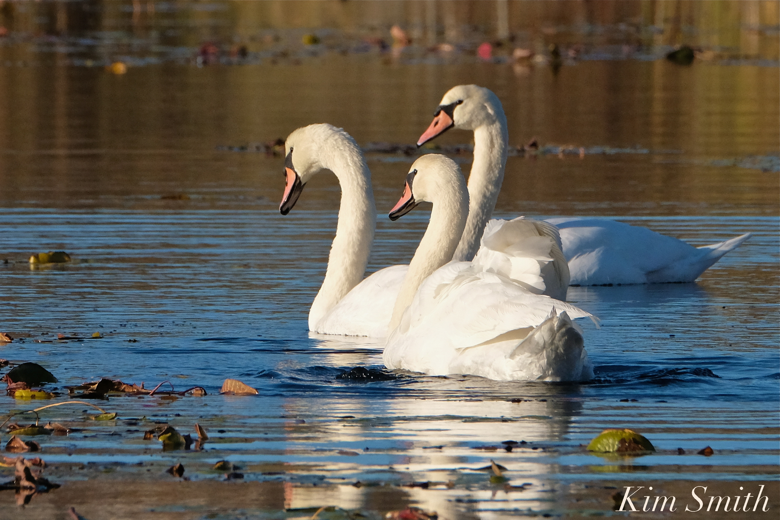 Mute Swans Cygnus olor Three Gloucester MA copyright Kim Smith – 11