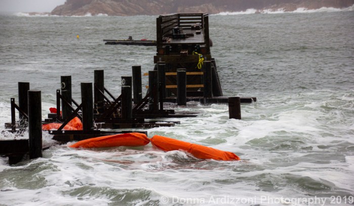 A couple of photos from Monday as it was blowing, high tides, and rain. You can see from the Magnolia Pier photo that making the pier 2 feet higher it will protect our beloved pier. The waves off Kettle Island were very impressive.