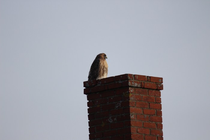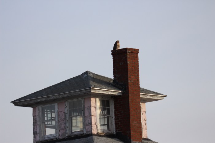 A handsome hawk appears to be guarding the iconic pink house in Newbury.