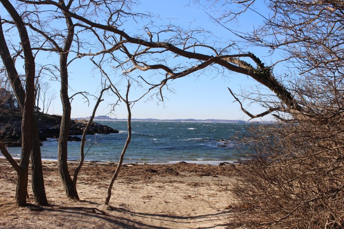 It wasn’t exactly a day for beach-sitting, but Plum Cove Beach kind of sparkled in the sun that day. We were treated to some two legged beachcombers too.