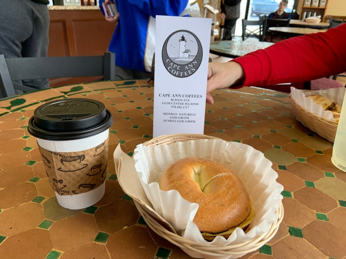 When we went to Cape Ann Coffee to pick up our quiches for the Super Bowl (apparently NOT appropriate football fare but I do not care), we decided to have a sandwich. I got the turkey Reuben and Jim got an egg sandwich. Perfectly hit the spot. Thank you Cape Ann Coffee!
