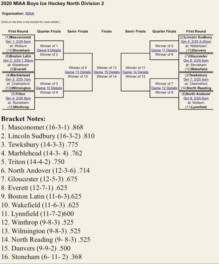Hockey State Tournament: #7 Gloucester vs #10 Wakefield at Stoneham Arena Tuesday 2/25 6pm. Via @FishermenGHS