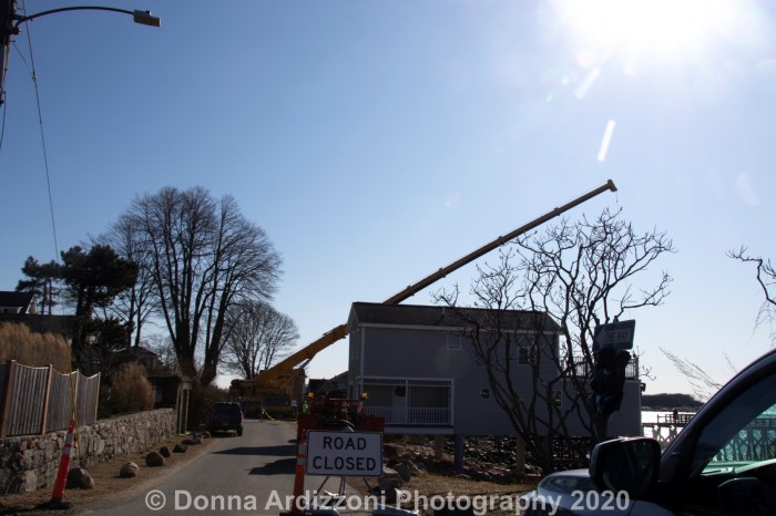 The crane at the Magnolia Pier is so big, the road is closed. The workers were drilling down some pilings today and you can see the dust coming from the pilings. Very exciting.