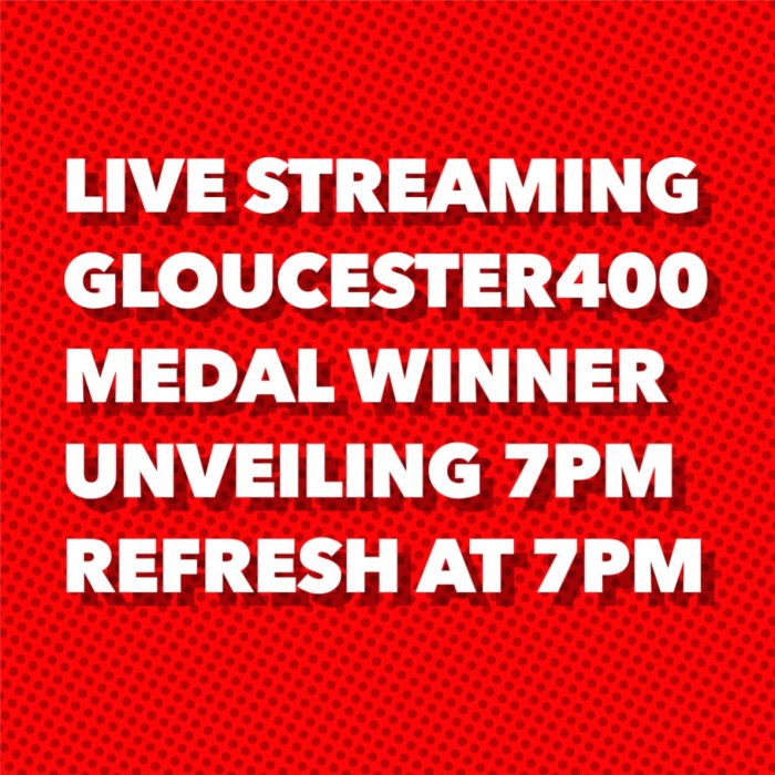 One thought on “Live Streaming The Gloucester 400 Commemorative Medal Winner Unveiling At 7PM Refresh GMG at 7PM”