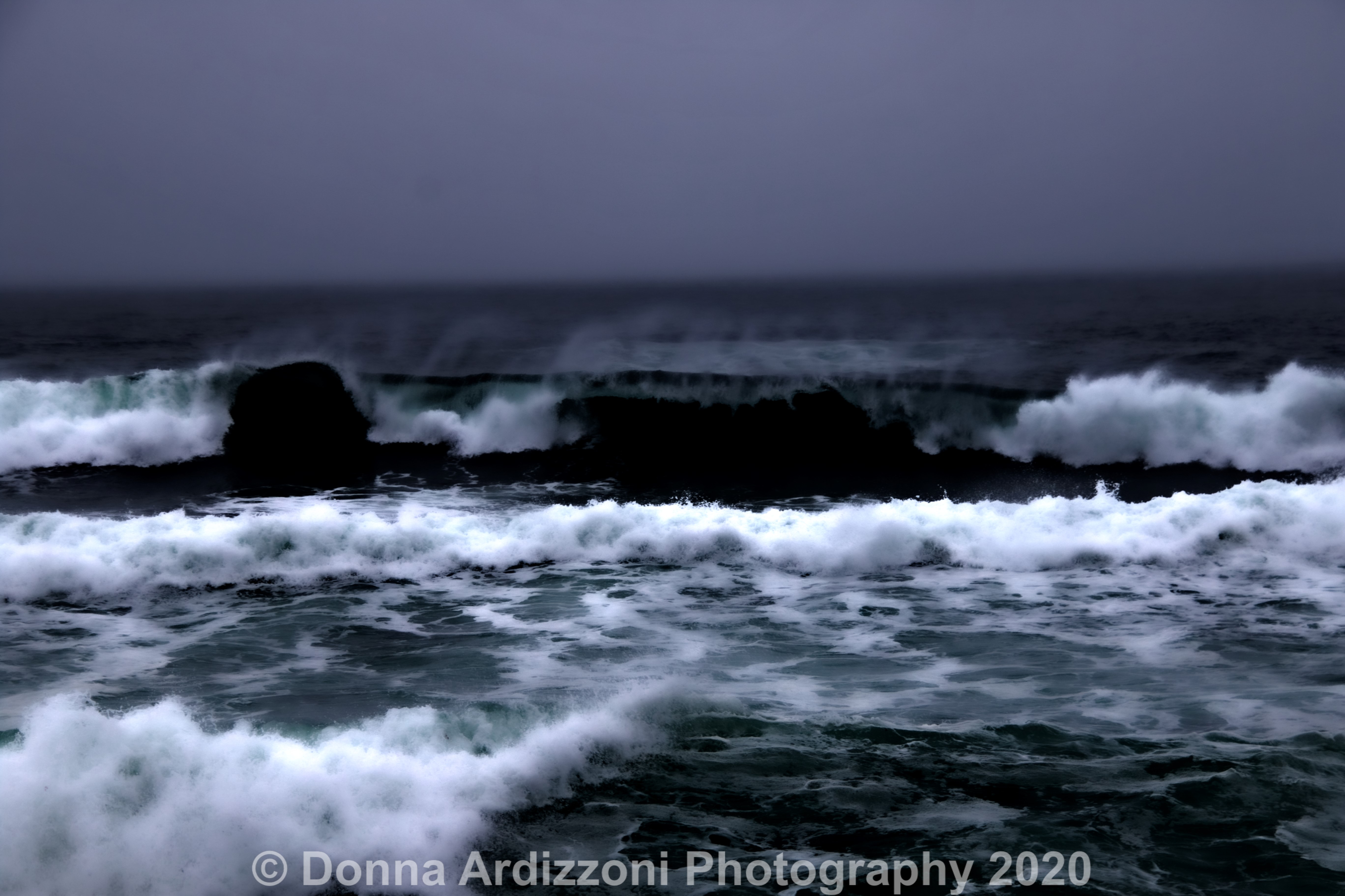 You can see how dark it was at high tide on Monday, but the foam of the waves still showed their beauty.