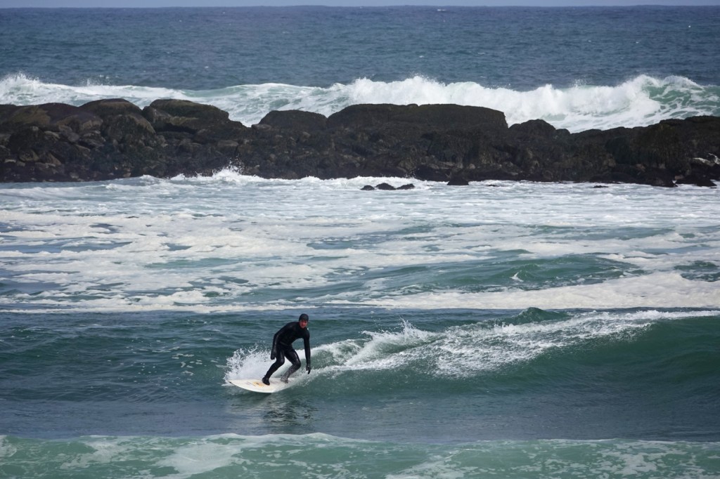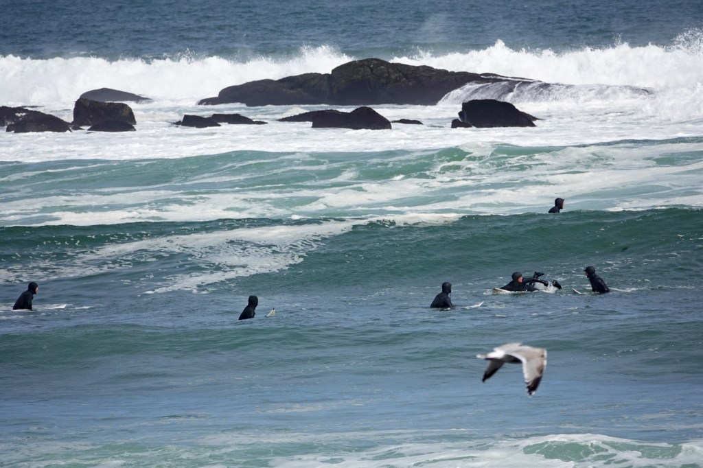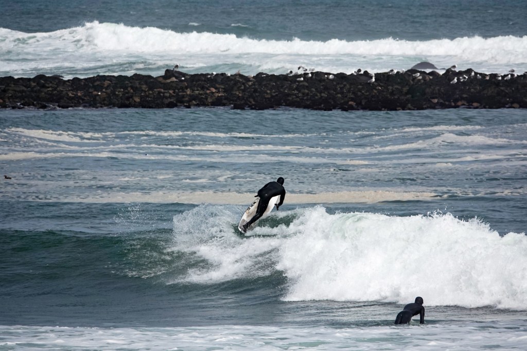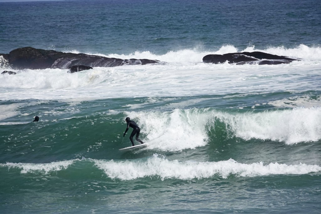 Once in a while surfing conditions are good at Brace Cove, Gloucester. The word got out Sunday afternoon.