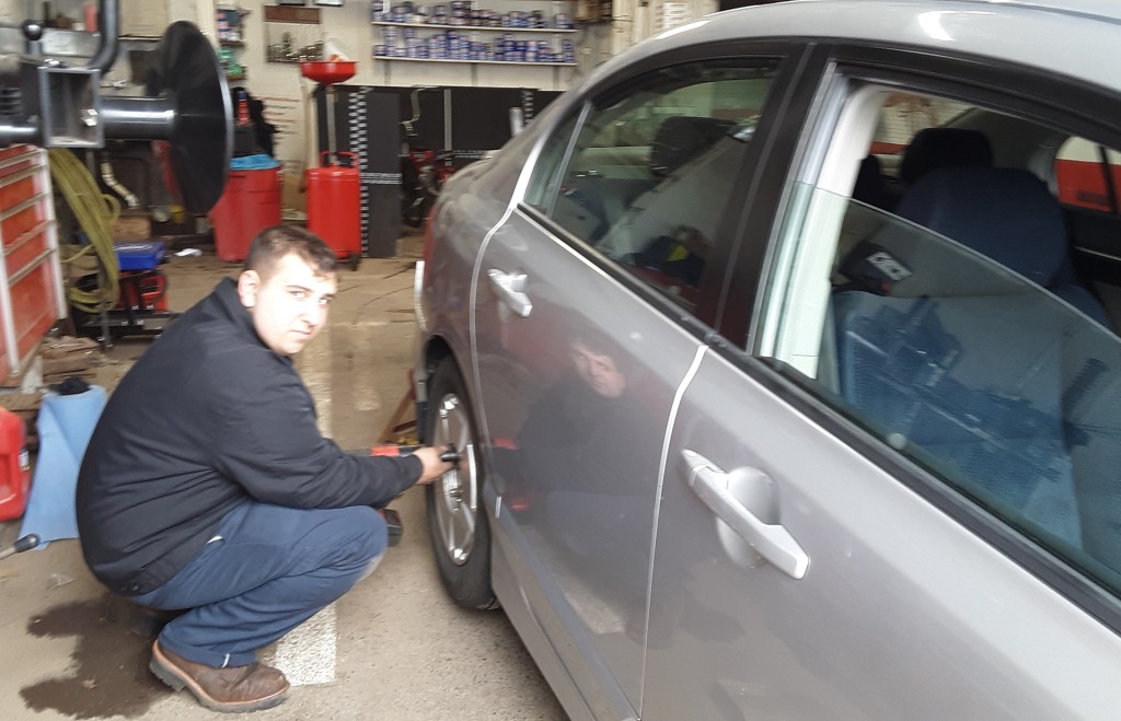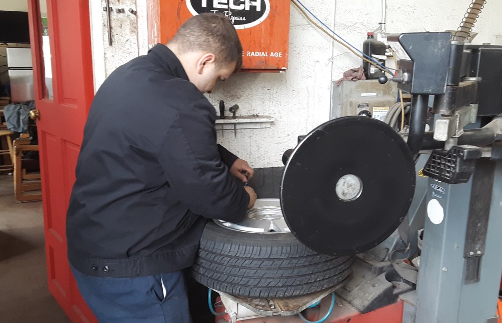 I love our vocational program! Today I went out for groceries and noticed one of my tires was low.