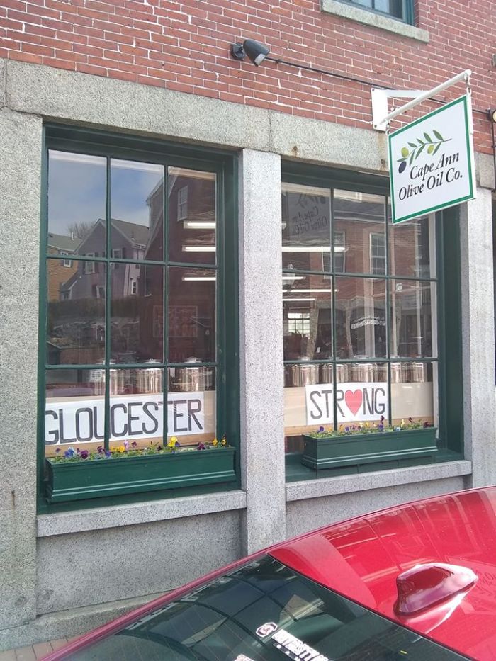 When I went to pick up curbside some Cape Ann Olive Oil on Saturday, love the sign that Patty and Rick put in their window.