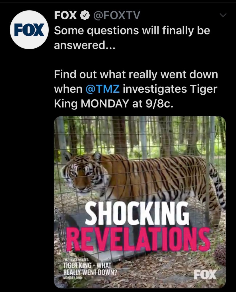 New Tiger King Episode Sunday and TMZ Investigation Show Monday