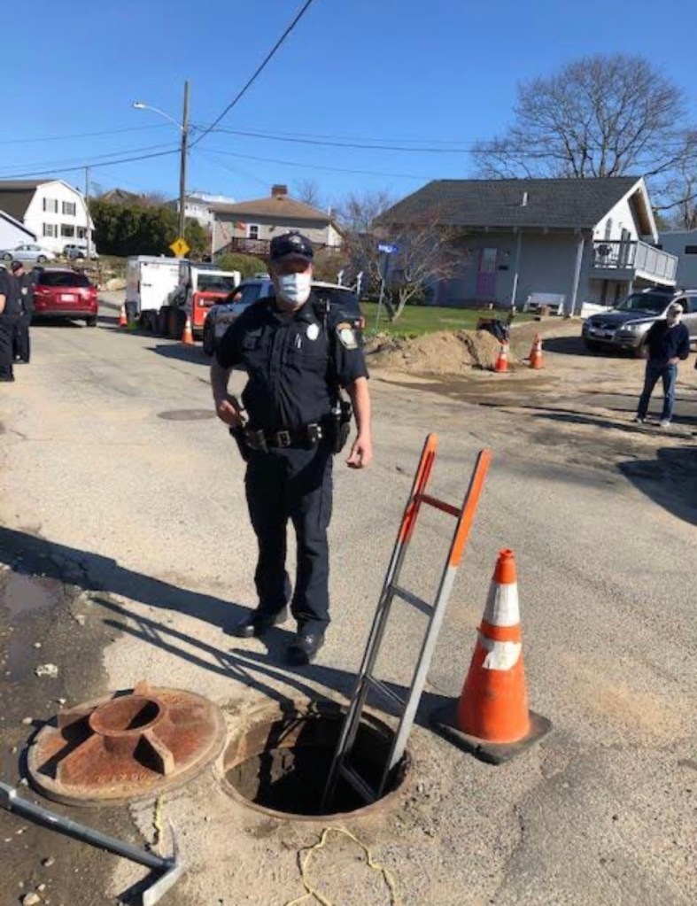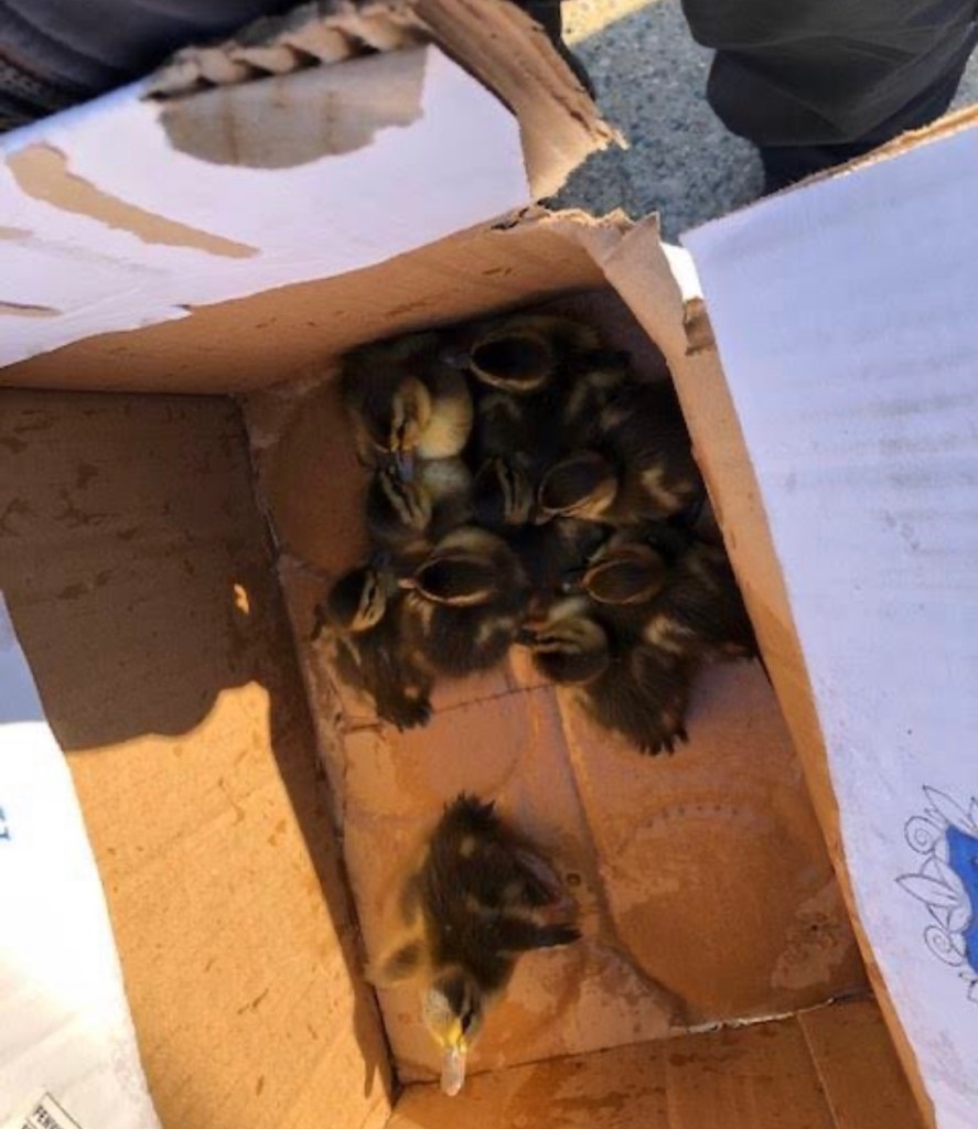 Great moment today when Officers Mackey and M Foote @GloucesterPD along with Firefighters Buddy Doucette, Dave Barrett and Paul Hudson @gloucesterfire helped rescue 14 ducklings that had fallen into a drain on Rockport Rd.